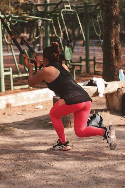 A TRX exercises PDF often includes structured workout schedules and plans tailored to various fitness goals and levels․ These plans outline daily or weekly routines, specifying exercises, sets, and repetitions for optimal results․ Beginners might find foundational plans focusing on core stability and basic movements, while advanced users can explore complex, full-body workouts․ The PDF may also offer customizable templates, allowing users to adjust routines based on their progress and objectives․ Additionally, it provides timing guidance, warm-up tips, and recovery strategies to maximize efficiency and safety, ensuring a well-rounded and effective training experience․